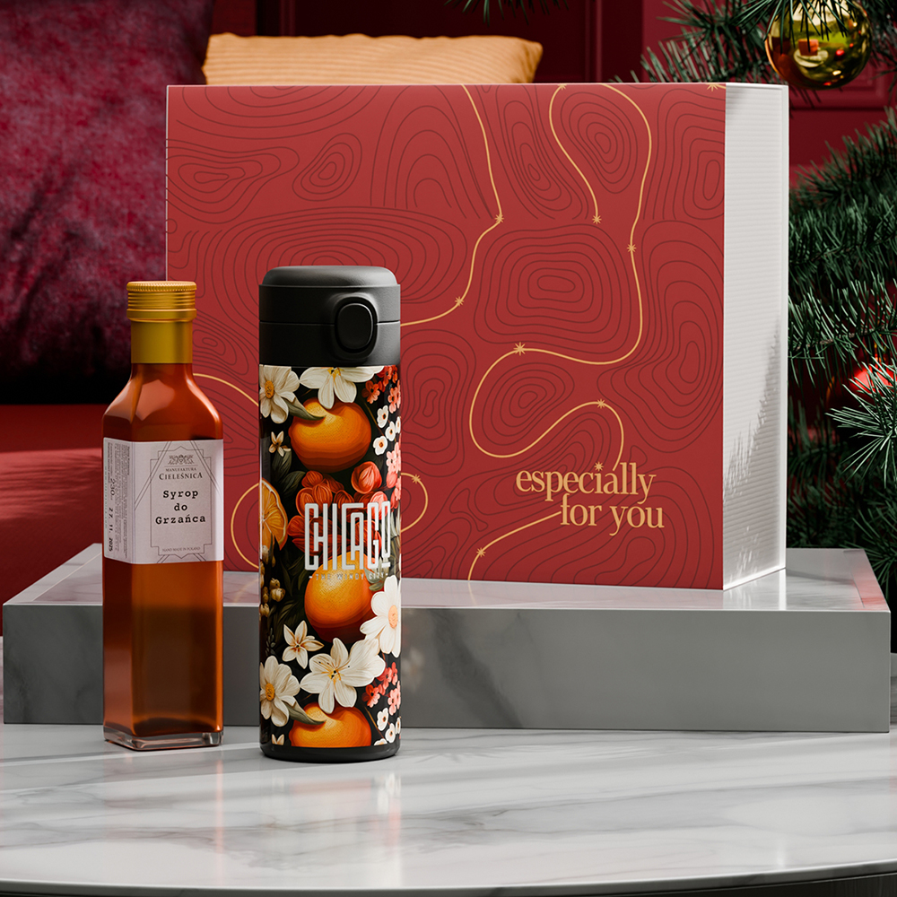 Doskonały na wyprawy rozgrzewający zestaw składający się z idealnie nadającego się do wyszukanych zdobień kubka termicznego Orion oraz pełnego aromatycznych przypraw syrop à la "grzaniec", który wzbogaci smak herbaty, kawy, czerwonego wina czy deserów. Zestaw pakowany w dedykowane ekologiczne opakowanie Snowy. Całość opatrzona elegancką personalizowaną obwolutą. PREZENTOWANE ZDOBIENIE MA CHARAKTER POGLĄDOWY I NIE JEST WLICZONE W CENĘ PRODUKTU. ZESTAW DOSTĘPNY W DEDYKOWANYM OPAKOWANIU SNOWY Z WYBRANĄ OPCJĄ ZDOBIENIA.